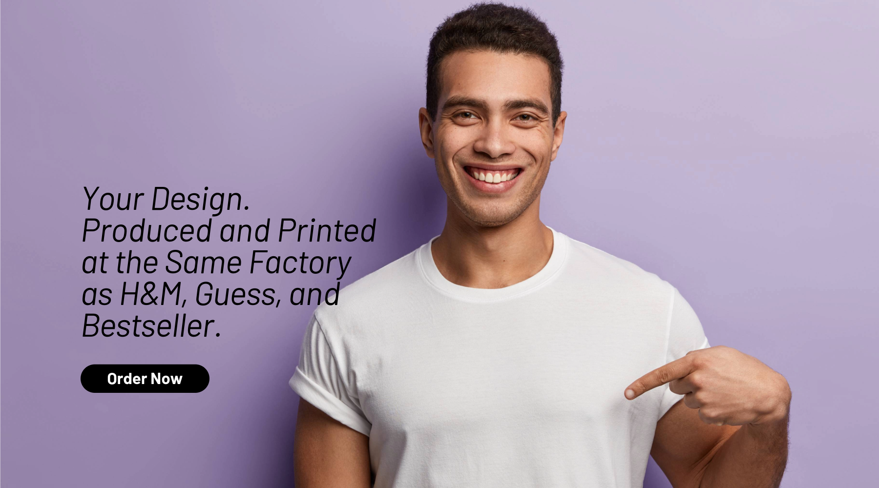 Every product in our collection comes from a factory that produces for H&M, Guess, Bestseller, and Next. You pick the garment. You add your design. We handle the rest.